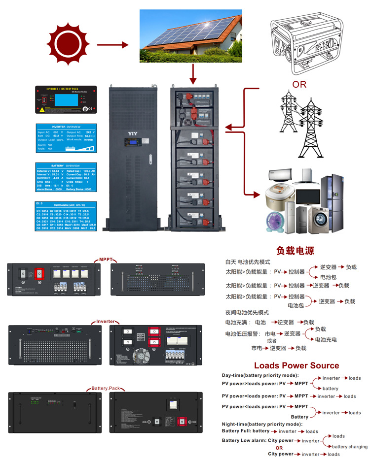 12KW/48V 500AH 25KWH鋰電儲能一體機